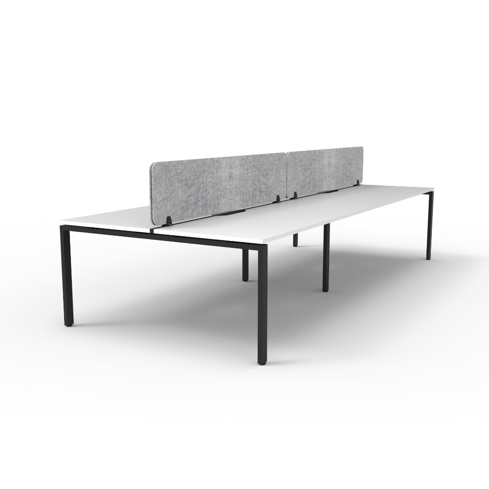 • 4 person double sided workstation with White top and Black Satin frame, Grey Eco screen.