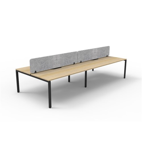 • 4 person double sided workstation with Natural Oak top and Black Satin frame, Grey Eco screen.