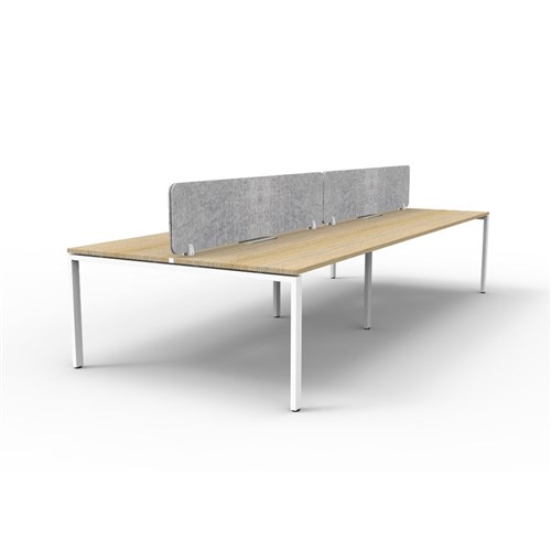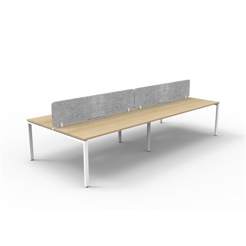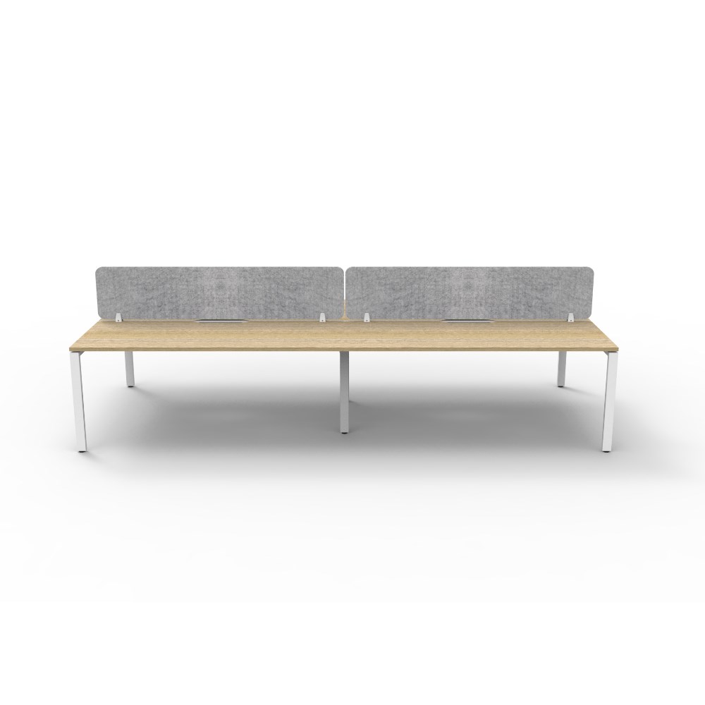 • 4 person double sided workstation with Natural Oak top and White Satin frame, Grey Eco screen.