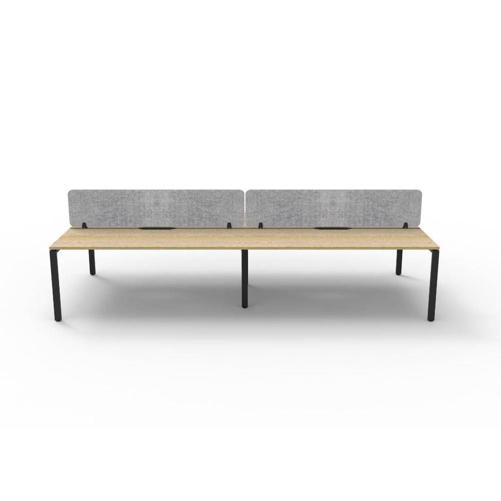 • 4 person double sided workstation with Natural Oak top and Black Satin frame, Grey Eco screen.