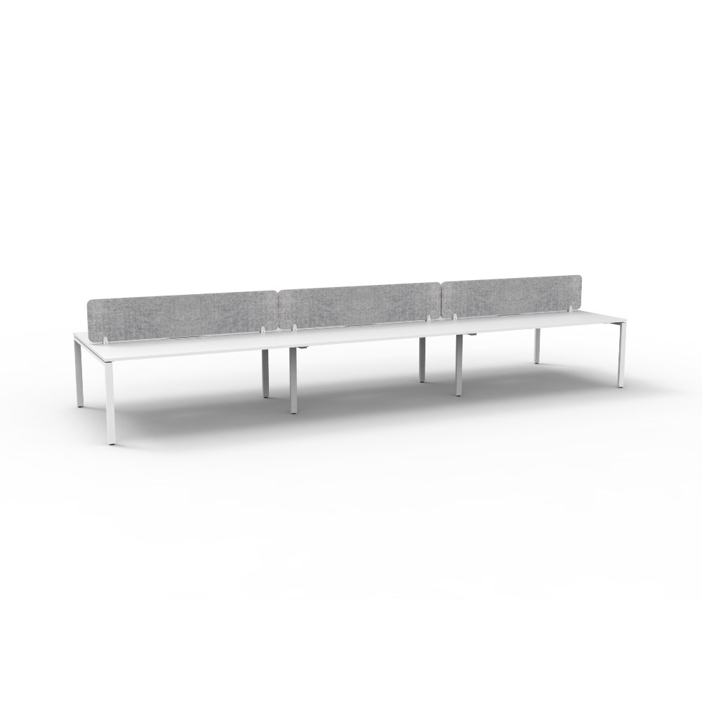 • 6 person double sided workstation with White top and White Satin frame, Grey Eco screen.