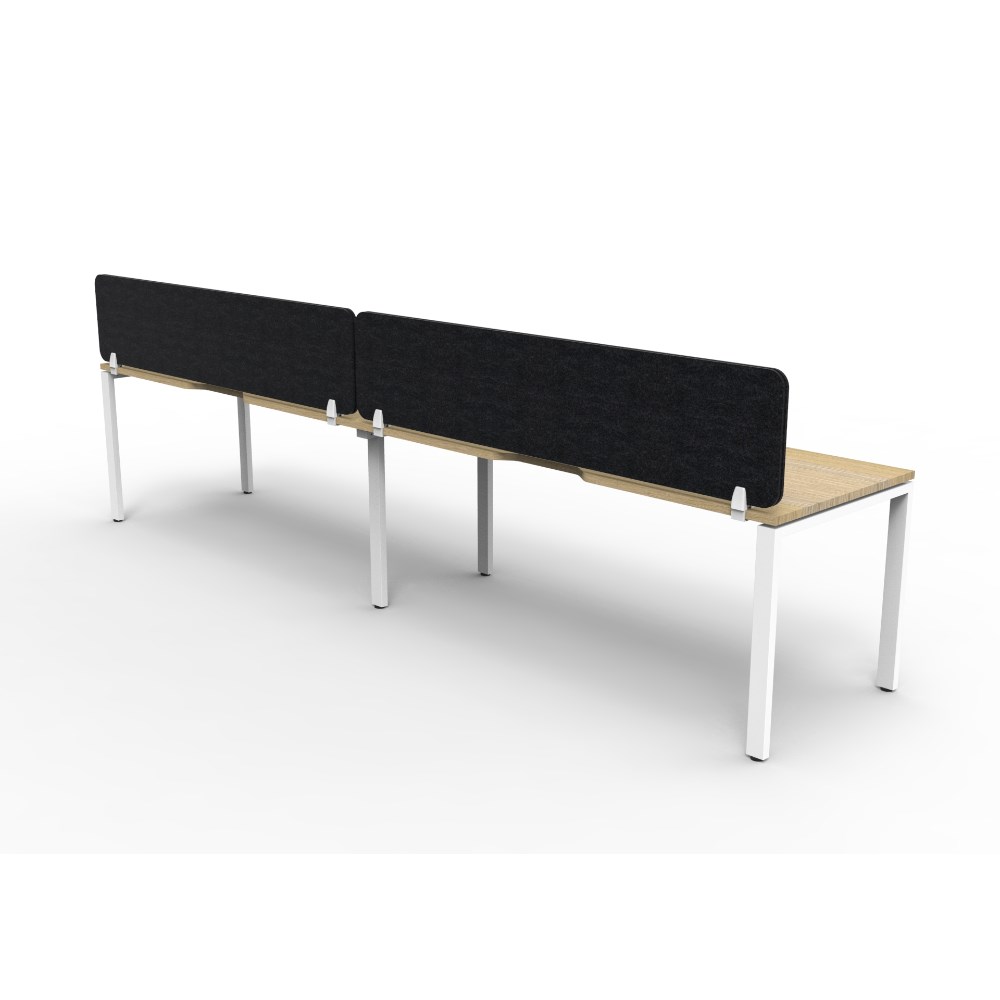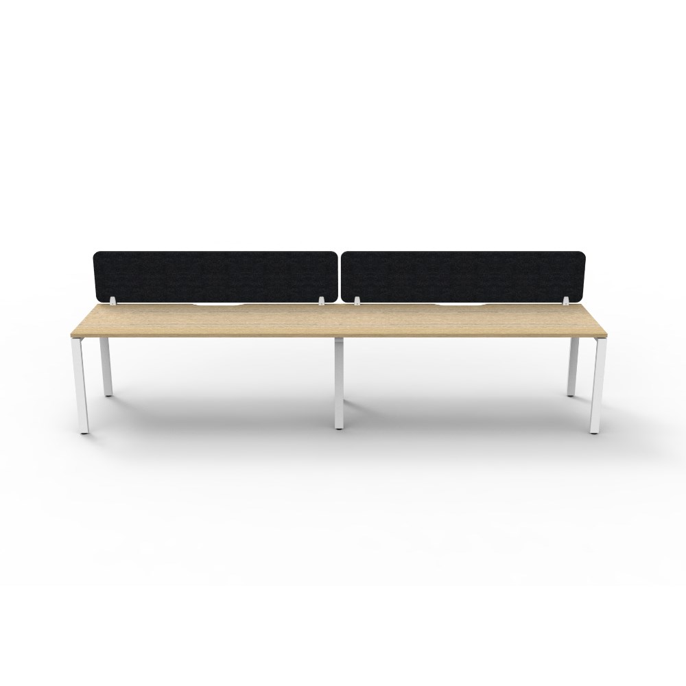 • 2 person single sided workstation with Natural Oak top and White Satin frame, Black Eco screen.