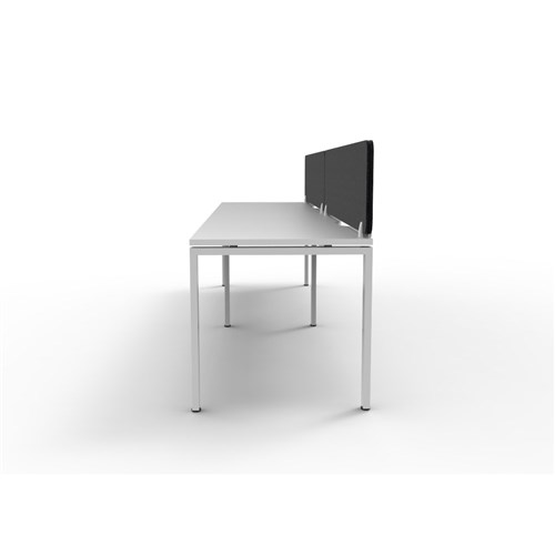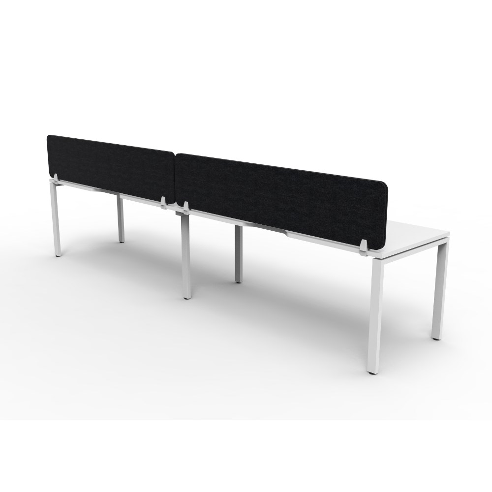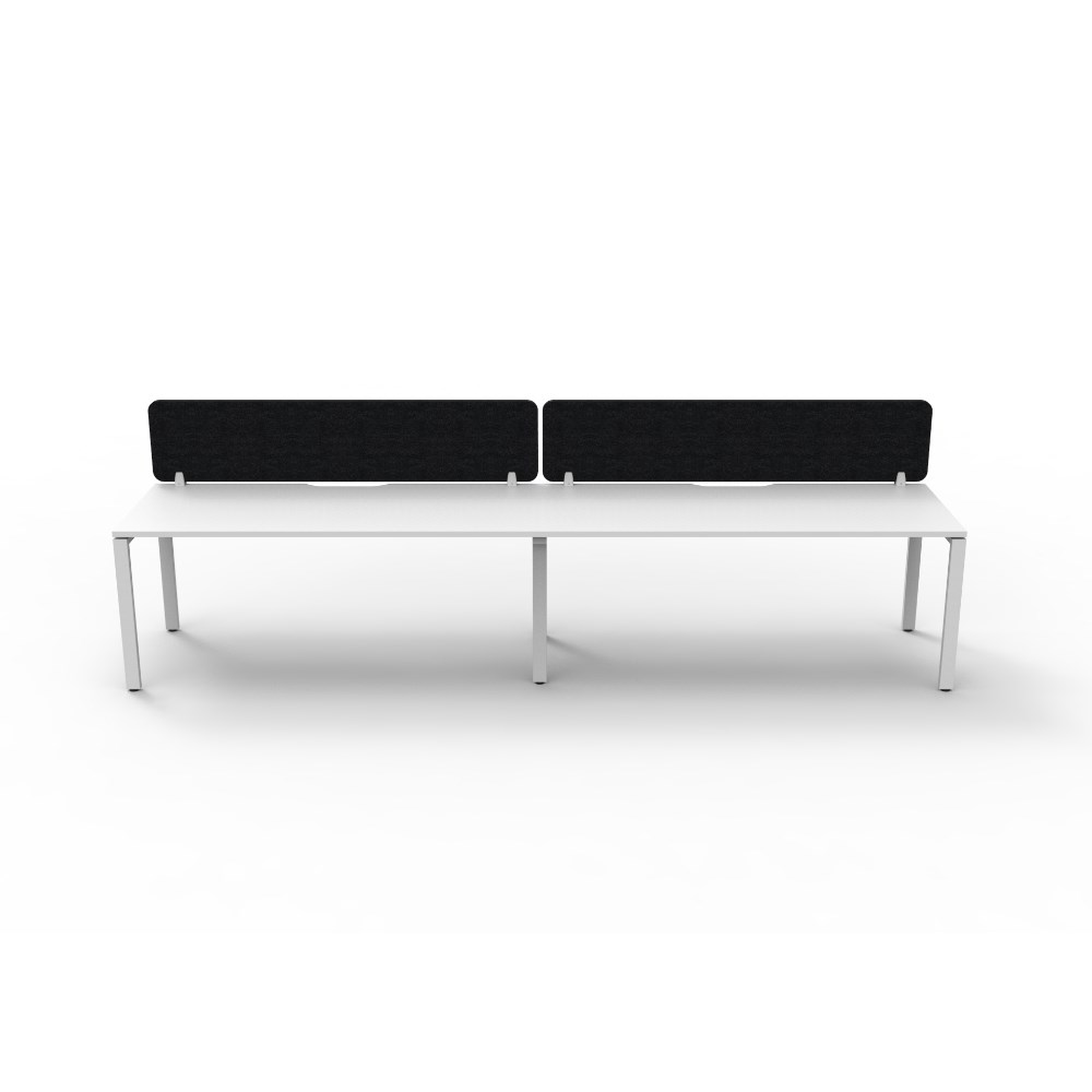 • 2 person single sided workstation with White top and White Satin frame, Black Eco screen.