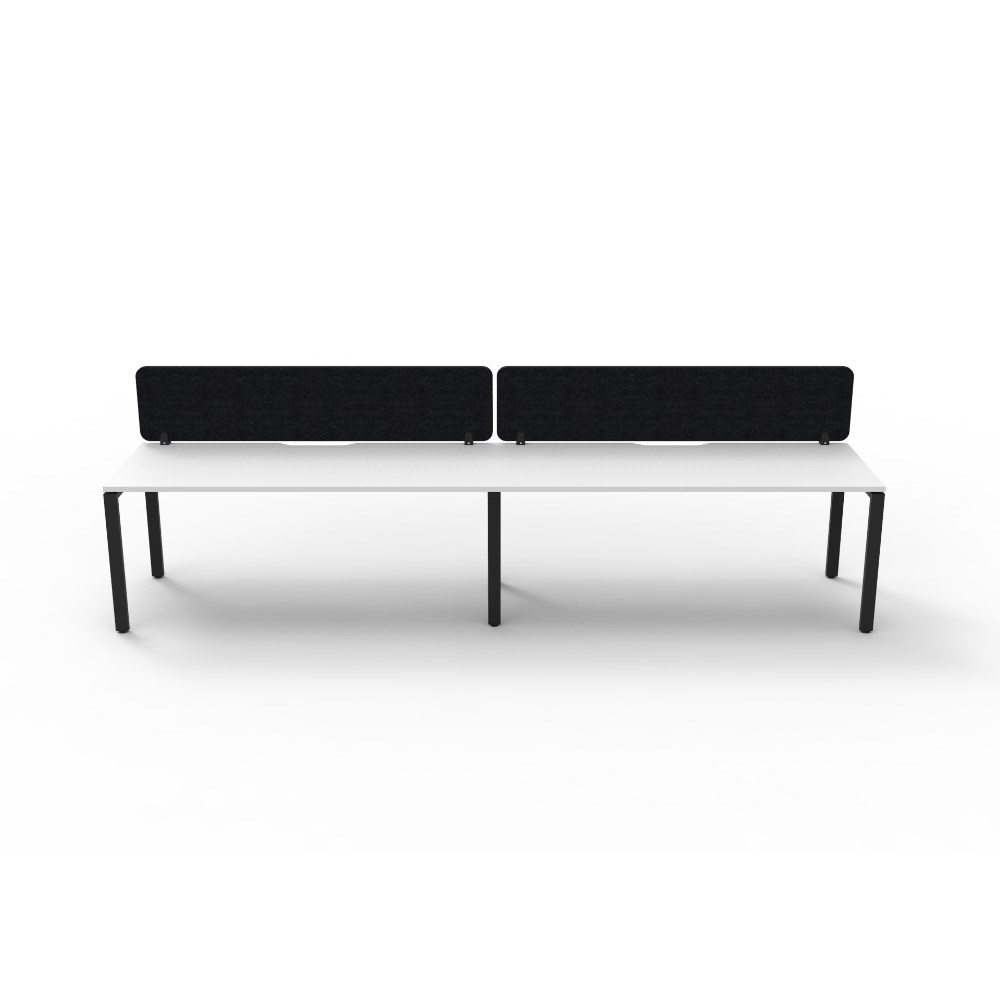 • 2 person single sided workstation with White top and Black Satin frame, Black Eco screen.