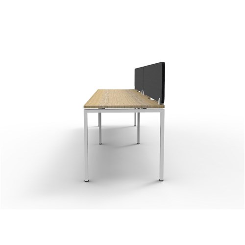 • 2 person single sided workstation with Natural Oak top and White Satin frame, Black Eco screen.