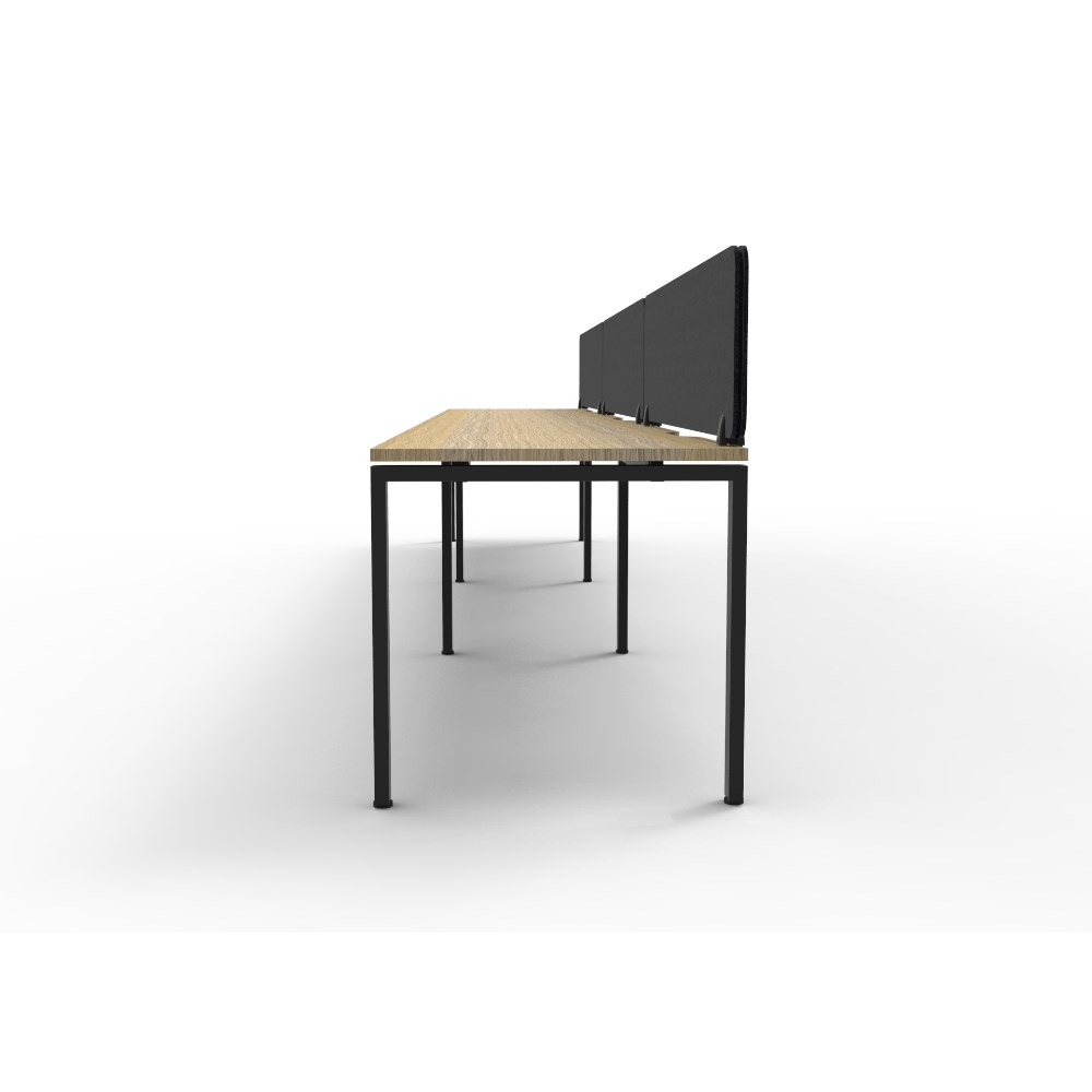 • 3 person single sided workstation with Natural Oak top and Black Satin frame, Black Eco screen.