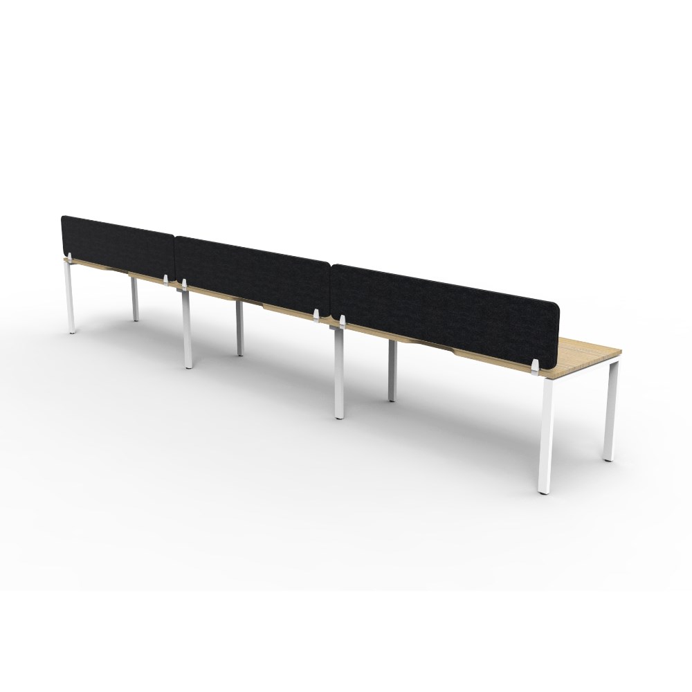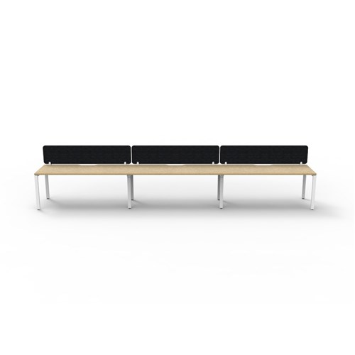 • 3 person single sided workstation with Natural Oak top and White Satin frame, Black Eco screen.