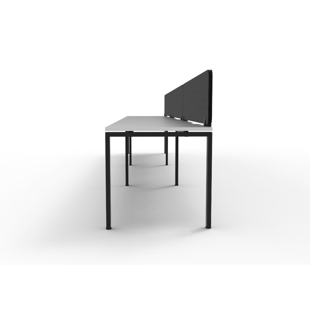 • 3 person single sided workstation with White top and Black Satin frame, Black Eco screen.