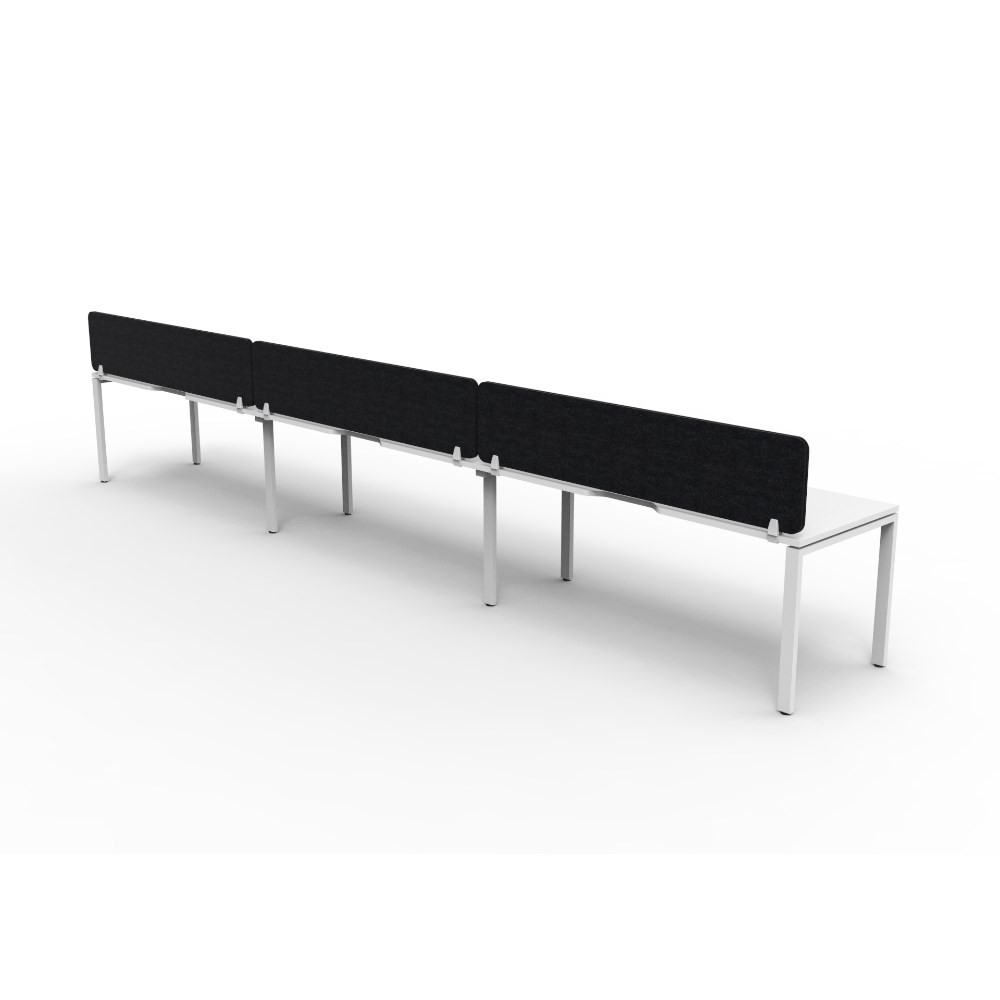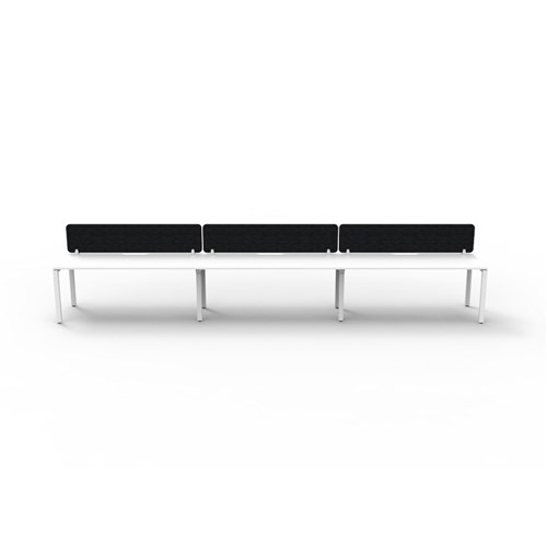 • 3 person single sided workstation with White top and White Satin frame, Black Eco screen.