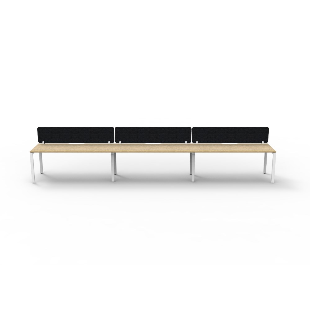 • 3 person single sided workstation with Natural Oak top and White Satin frame, Black Eco screen.
