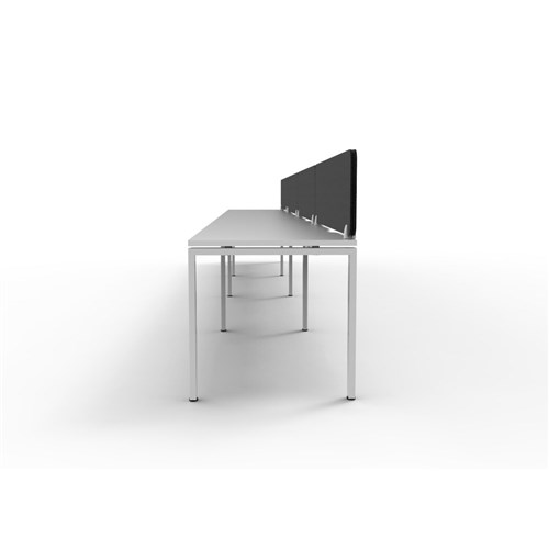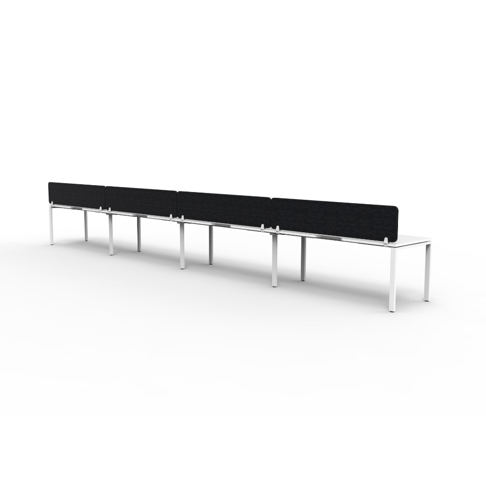• 4 person single sided workstation with White top and White Satin frame, Black Eco screen.