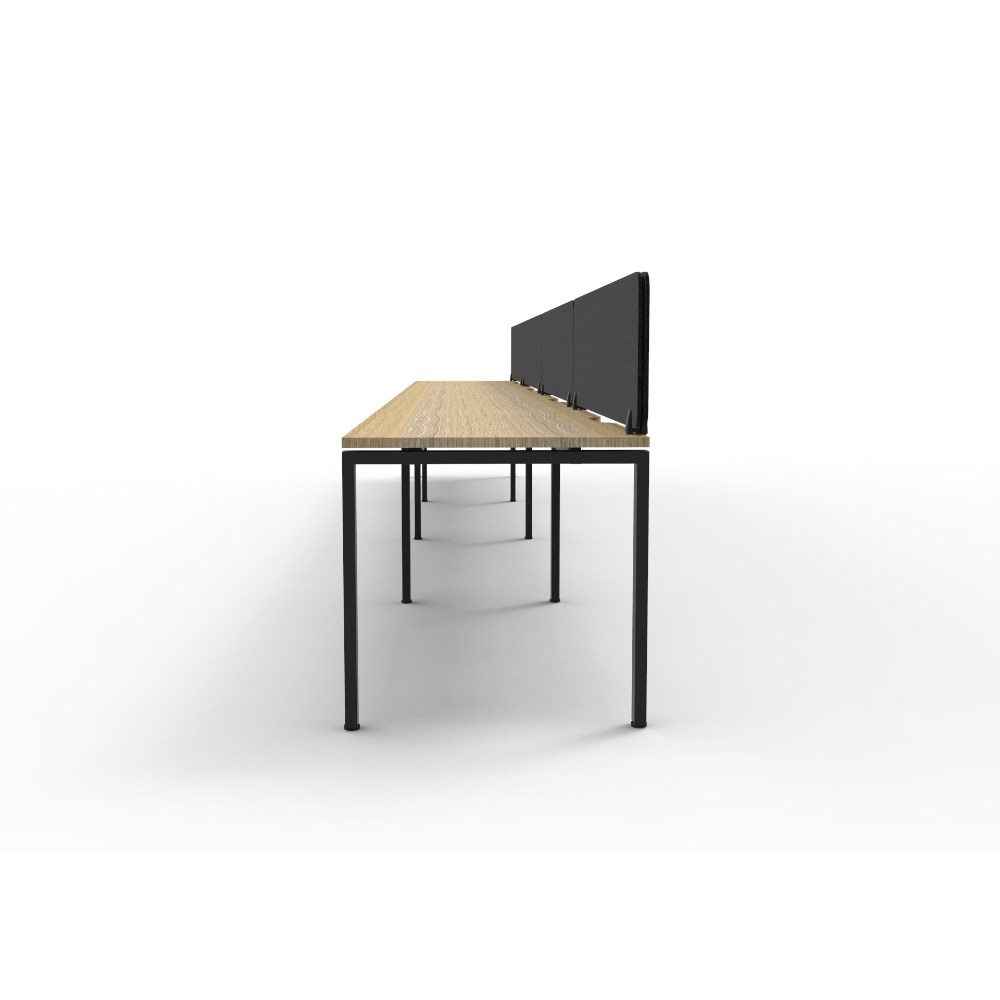 • 4 person single sided workstation with Natural Oak top and Black Satin frame, Black Eco screen.