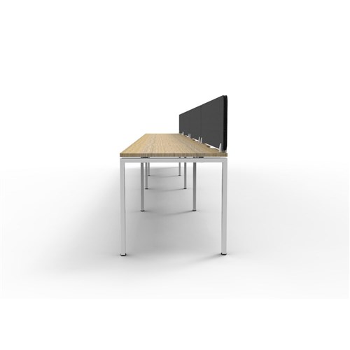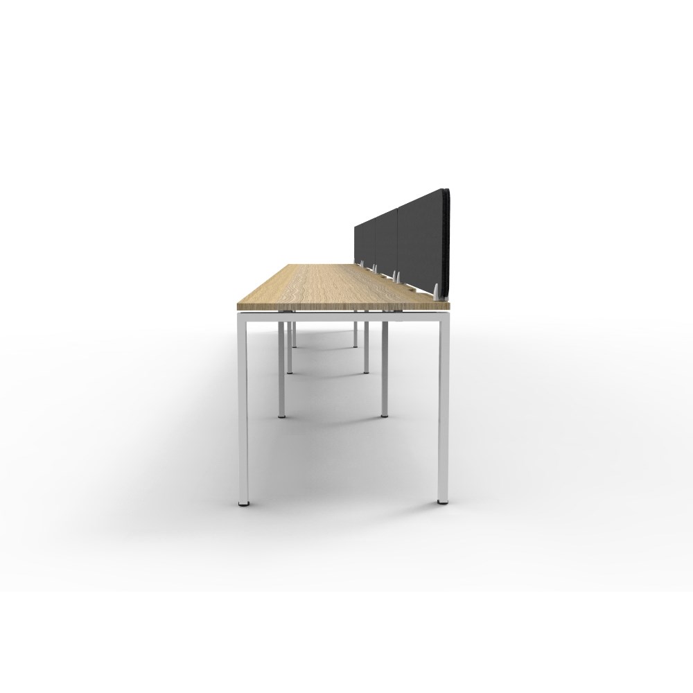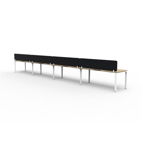 • 4 person single sided workstation with Natural Oak top and White Satin frame, Black Eco screen.