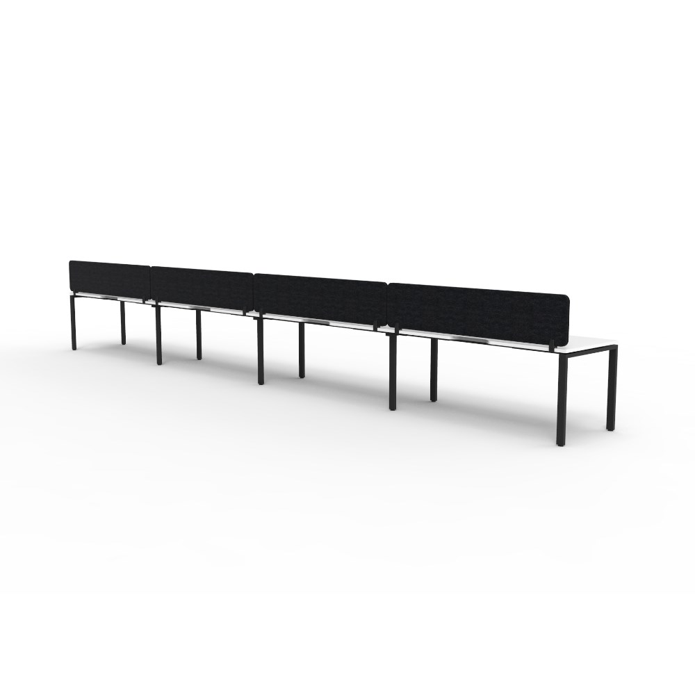 • 4 person single sided workstation with White top and Black Satin frame, Black Eco screen.