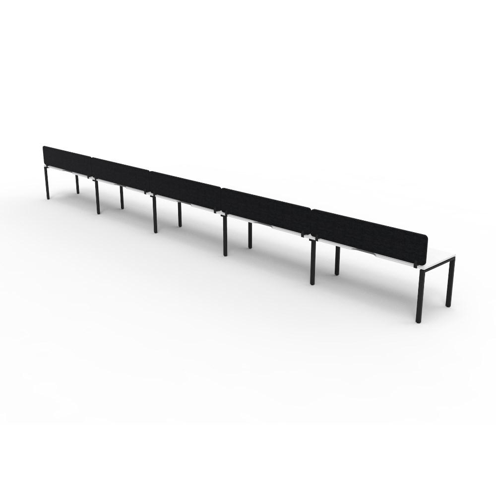 • 5 person single sided workstation with White top and Black Satin frame, Black Eco screen.
