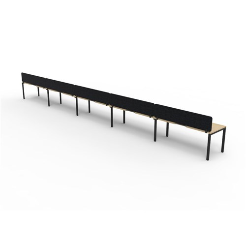 • 5 person single sided workstation with Natural Oak top and Black Satin frame, Black Eco screen.