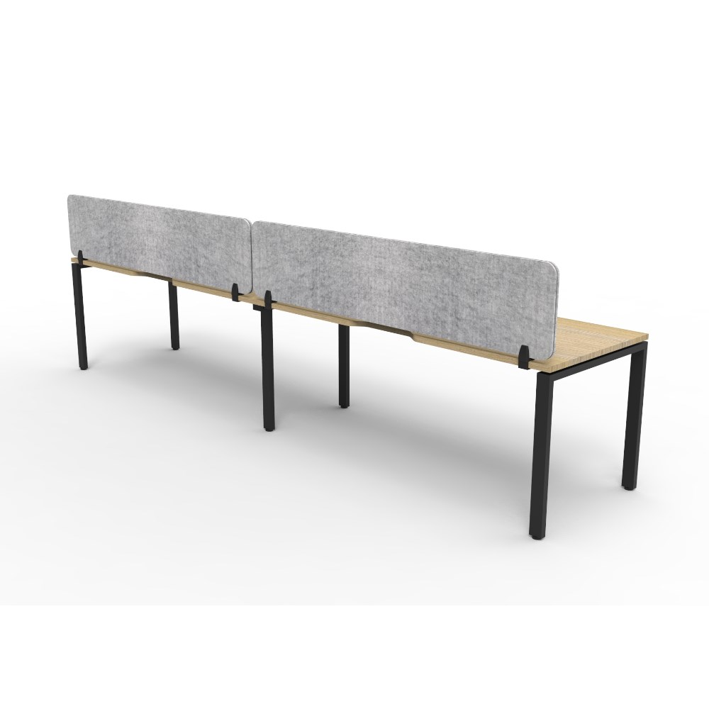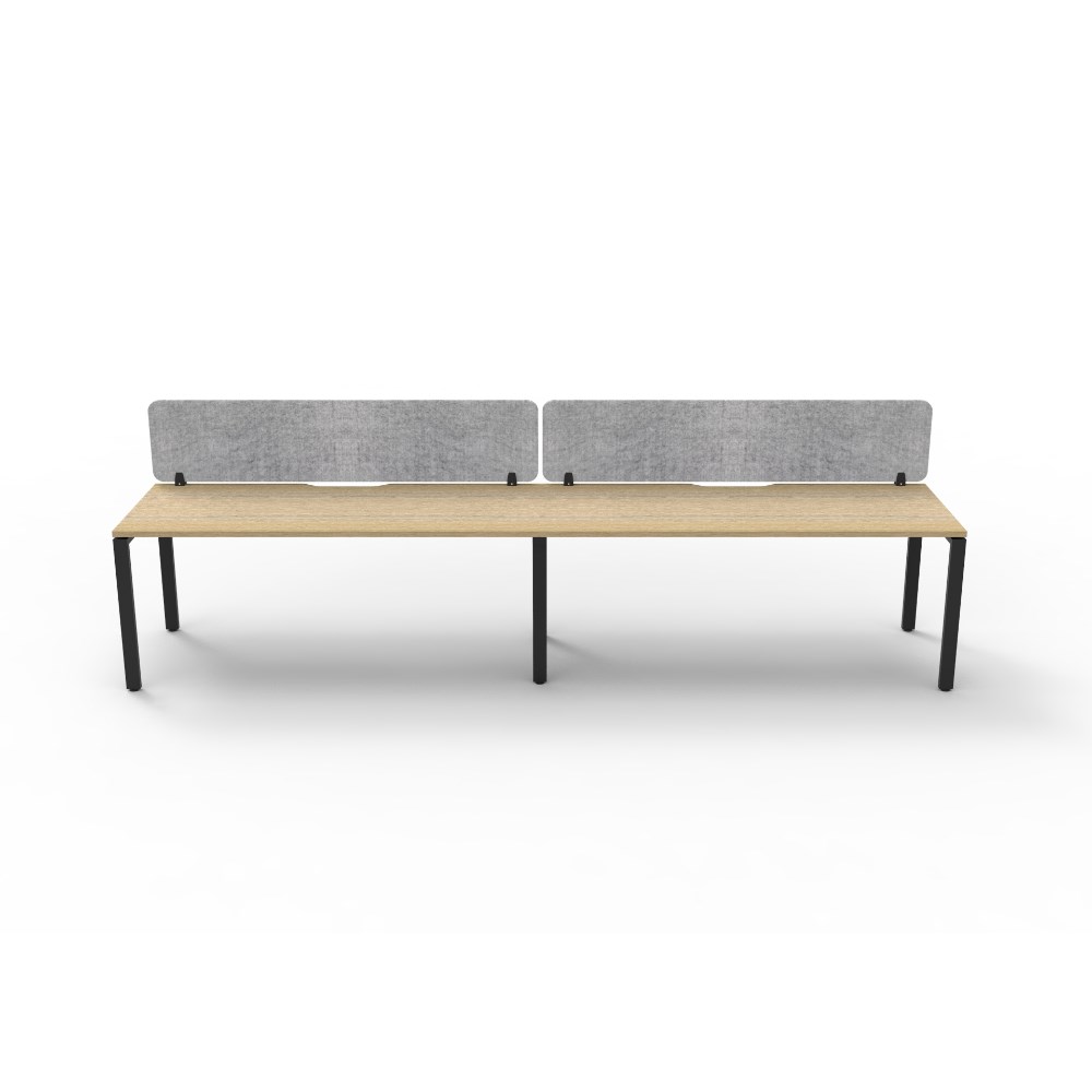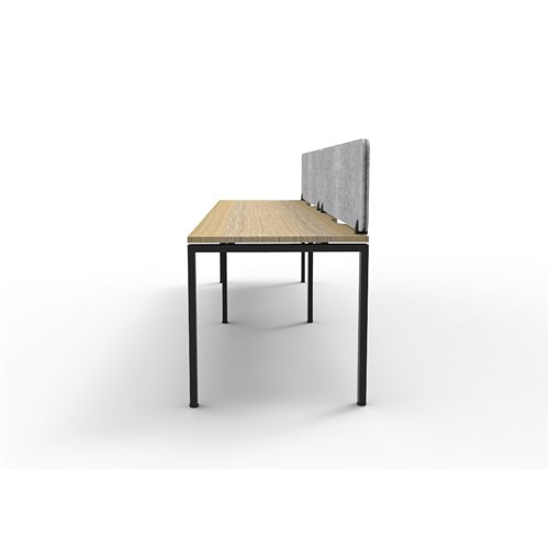 • 2 person single sided workstation with Natural Oak top and Black Satin frame, Grey Eco screen.