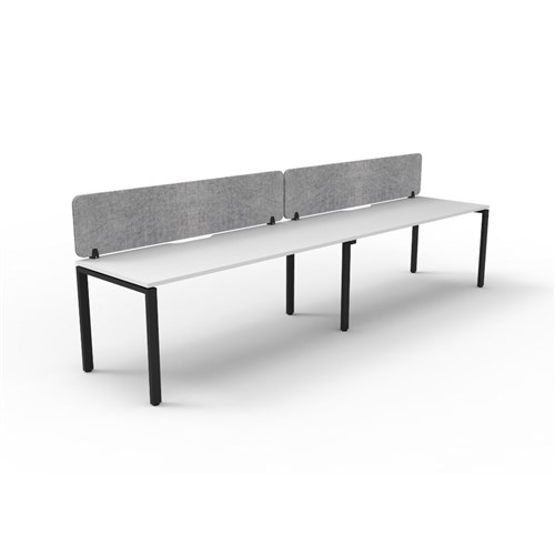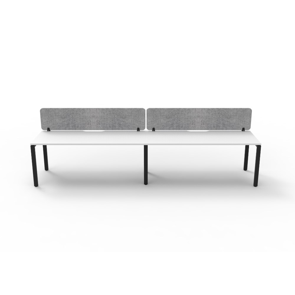 • 2 person single sided workstation with White top and Black Satin frame, Grey Eco screen.