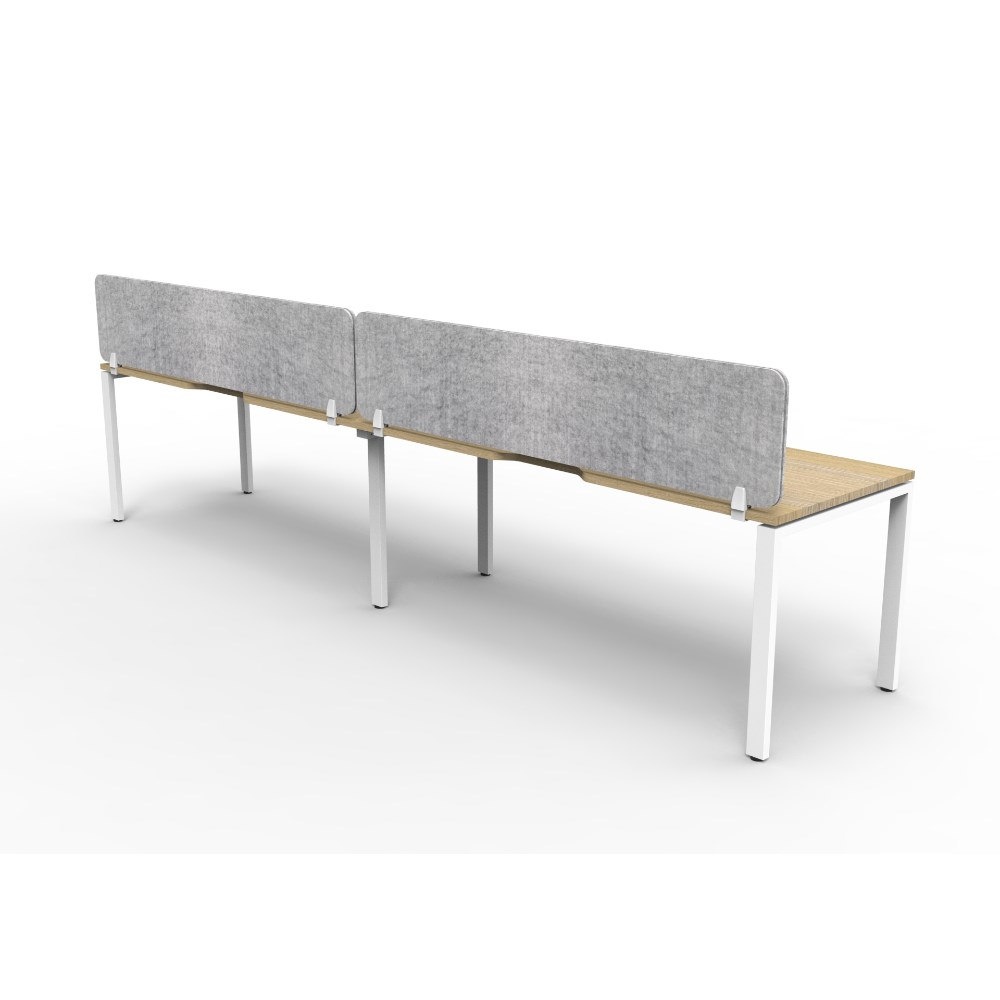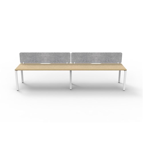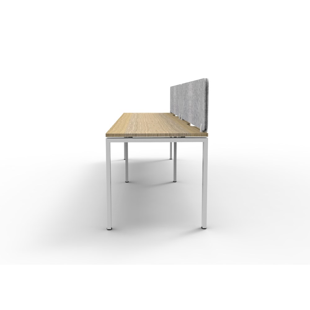 • 2 person single sided workstation with Natural Oak top and White Satin frame, Grey Eco screen.