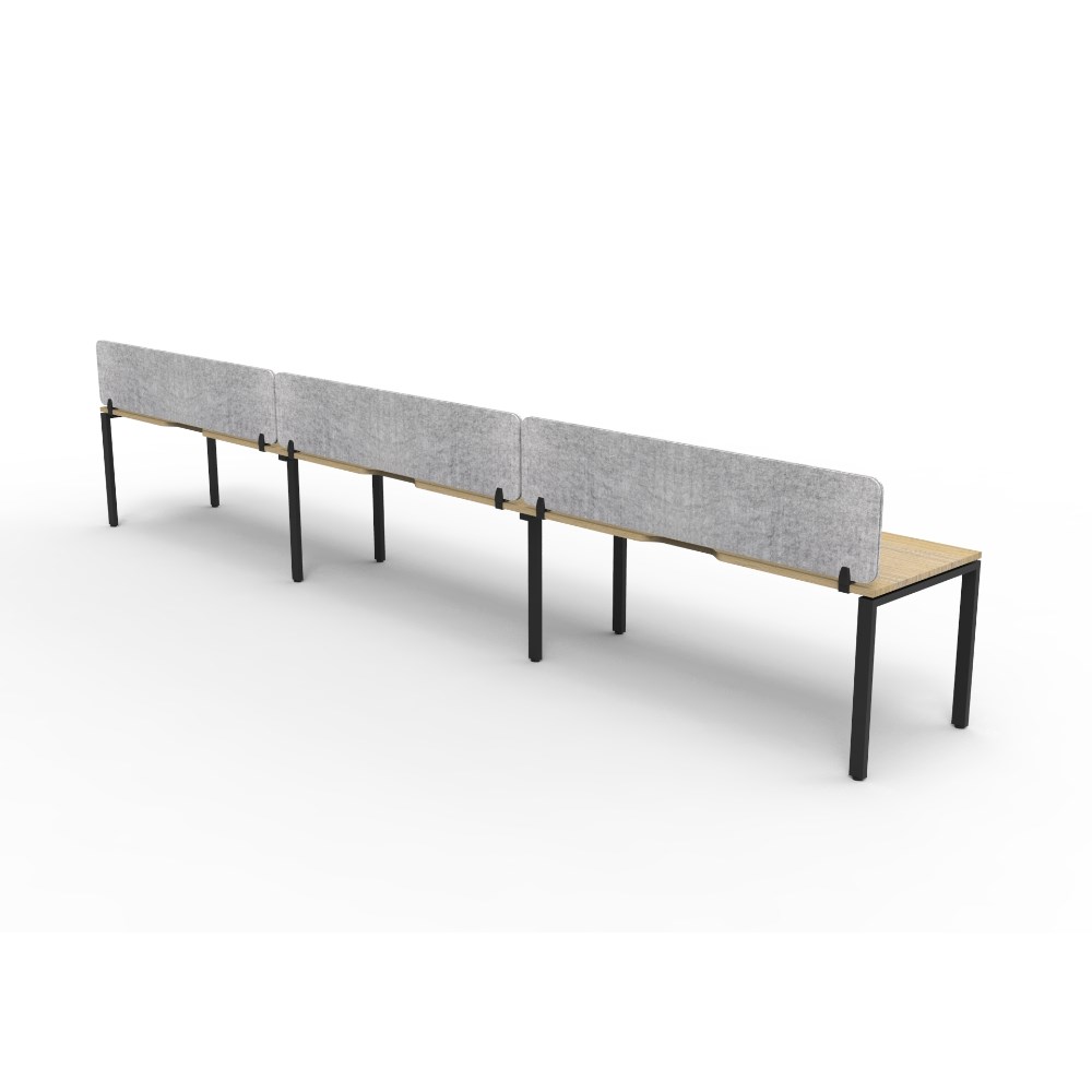• 3 person single sided workstation with Natural Oak top and Black Satin frame, Grey Eco screen.