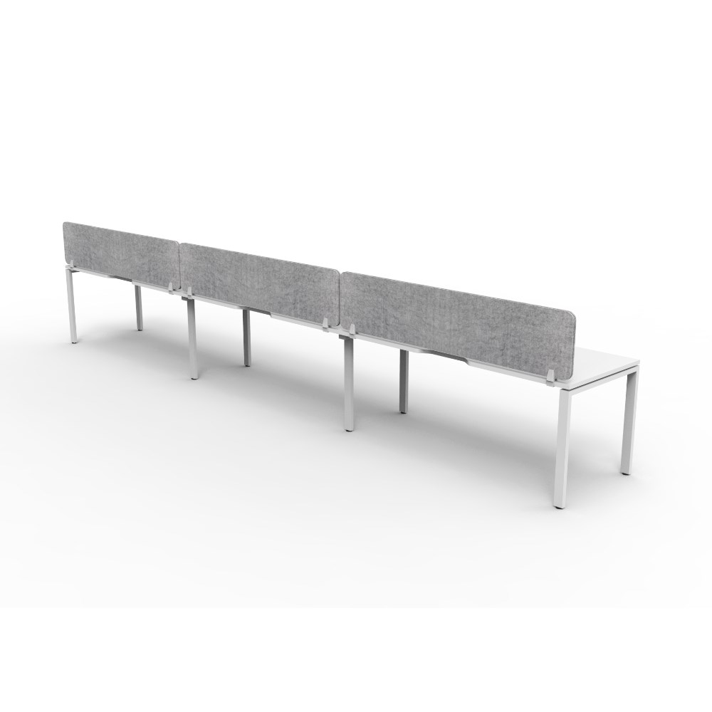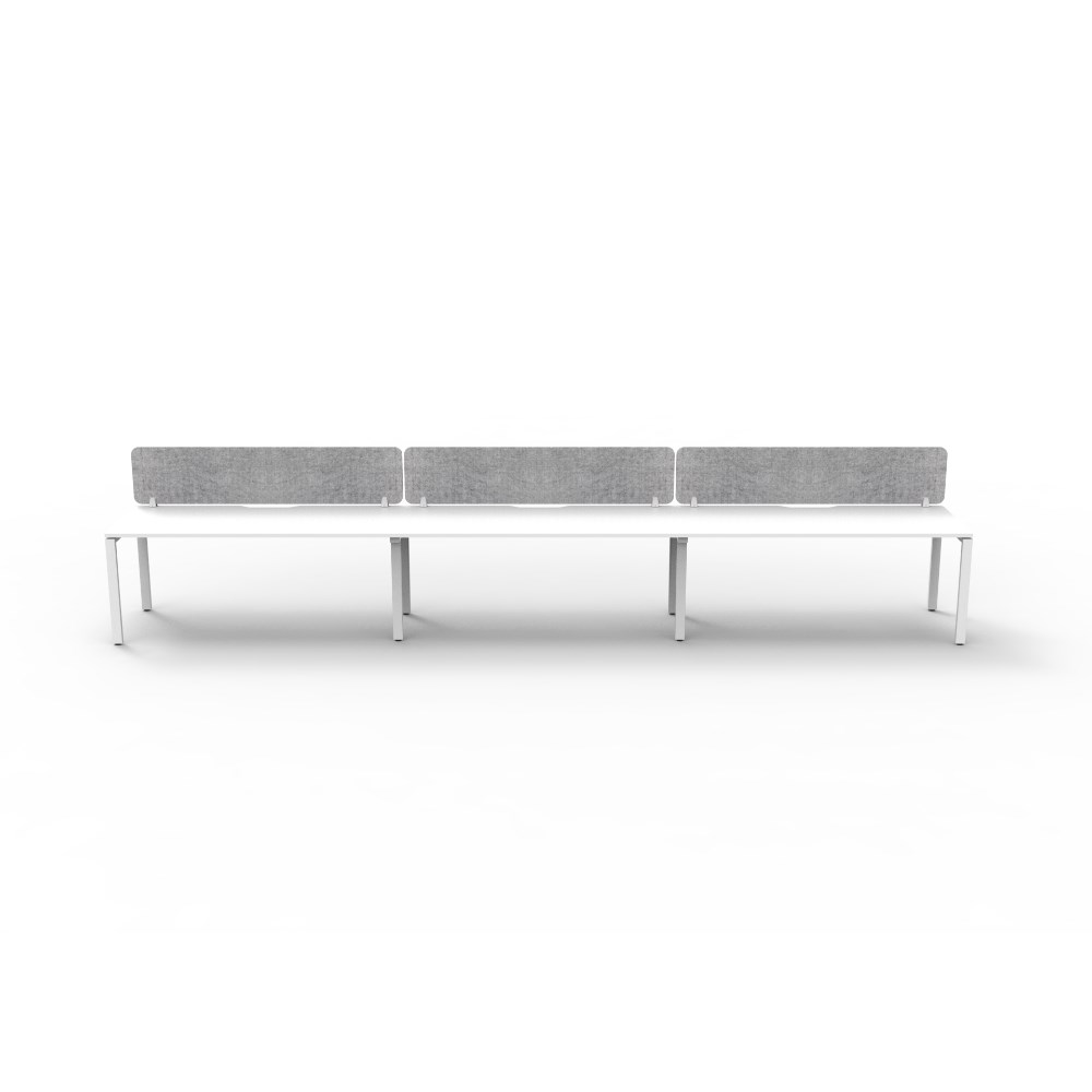 • 3 person single sided workstation with White top and White Satin frame, Grey Eco screen.