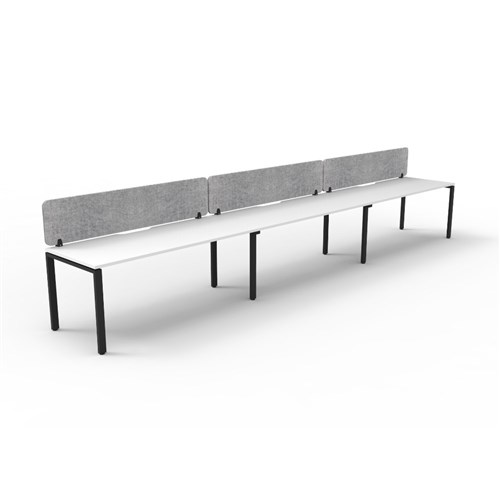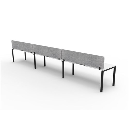• 3 person single sided workstation with White top and Black Satin frame, Grey Eco screen.