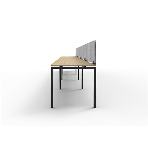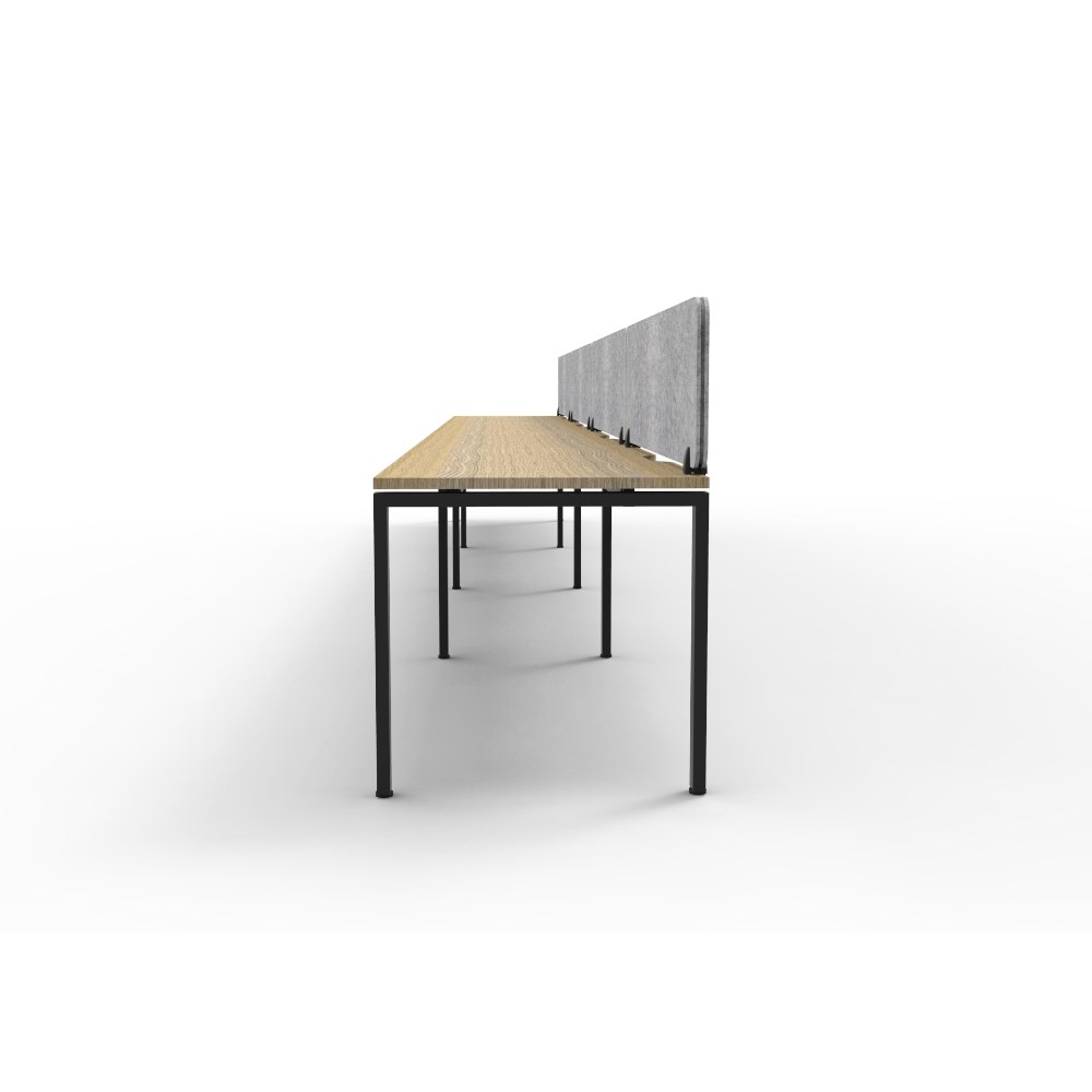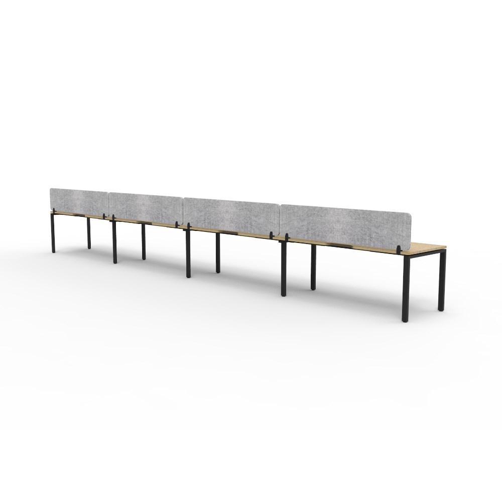 • 4 person single sided workstation with Natural Oak top and Black Satin frame, Grey Eco screen.