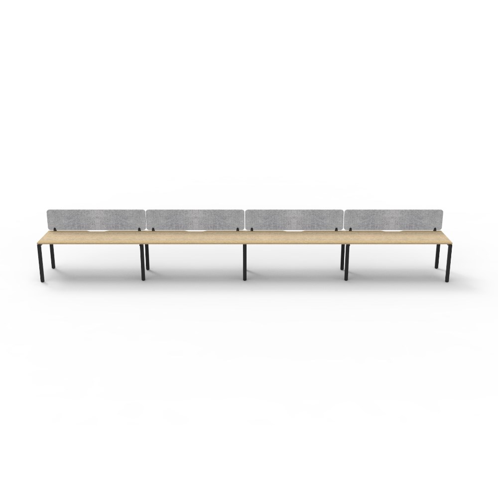 • 4 person single sided workstation with Natural Oak top and Black Satin frame, Grey Eco screen.