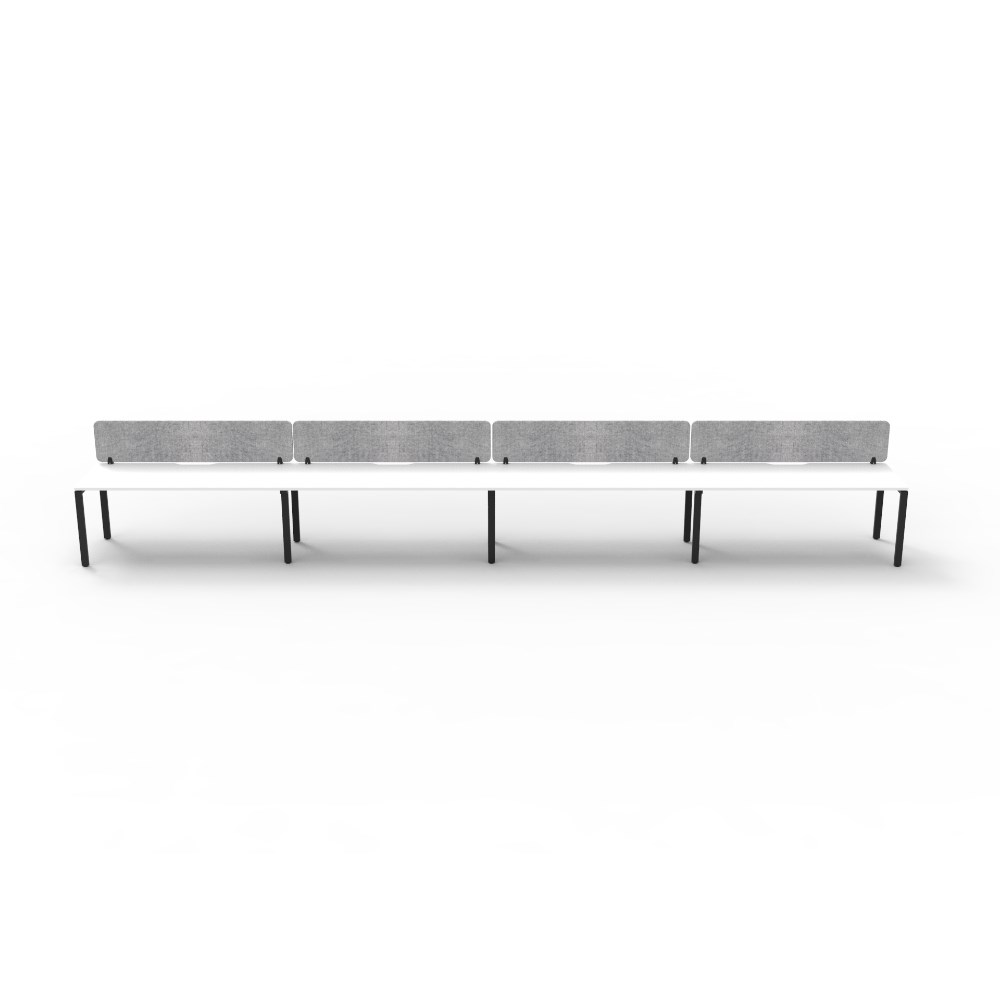 • 4 person single sided workstation with White top and Black Satin frame, Grey Eco screen.