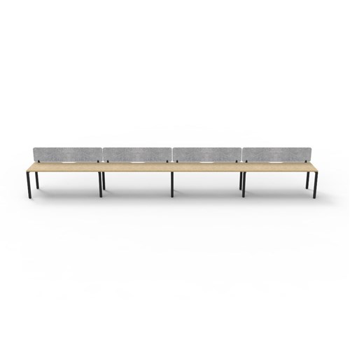 • 4 person single sided workstation with Natural Oak top and Black Satin frame, Grey Eco screen.