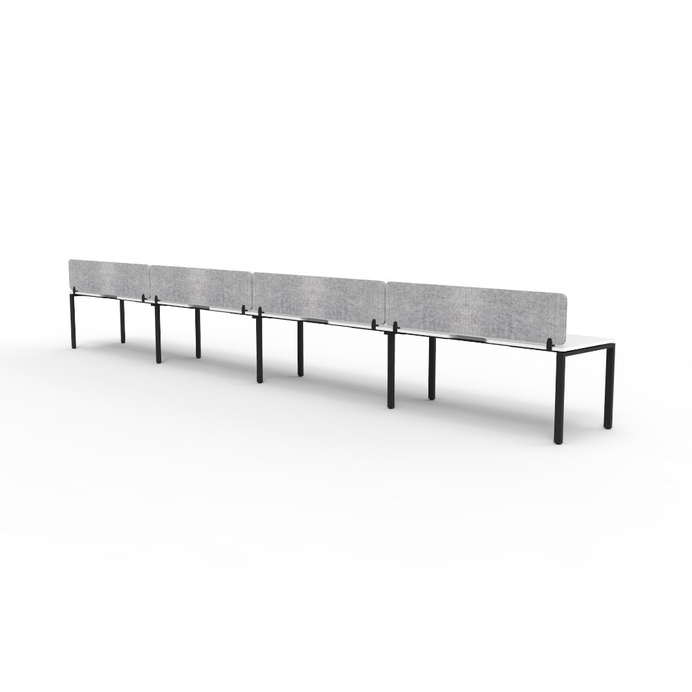 • 4 person single sided workstation with White top and Black Satin frame, Grey Eco screen.