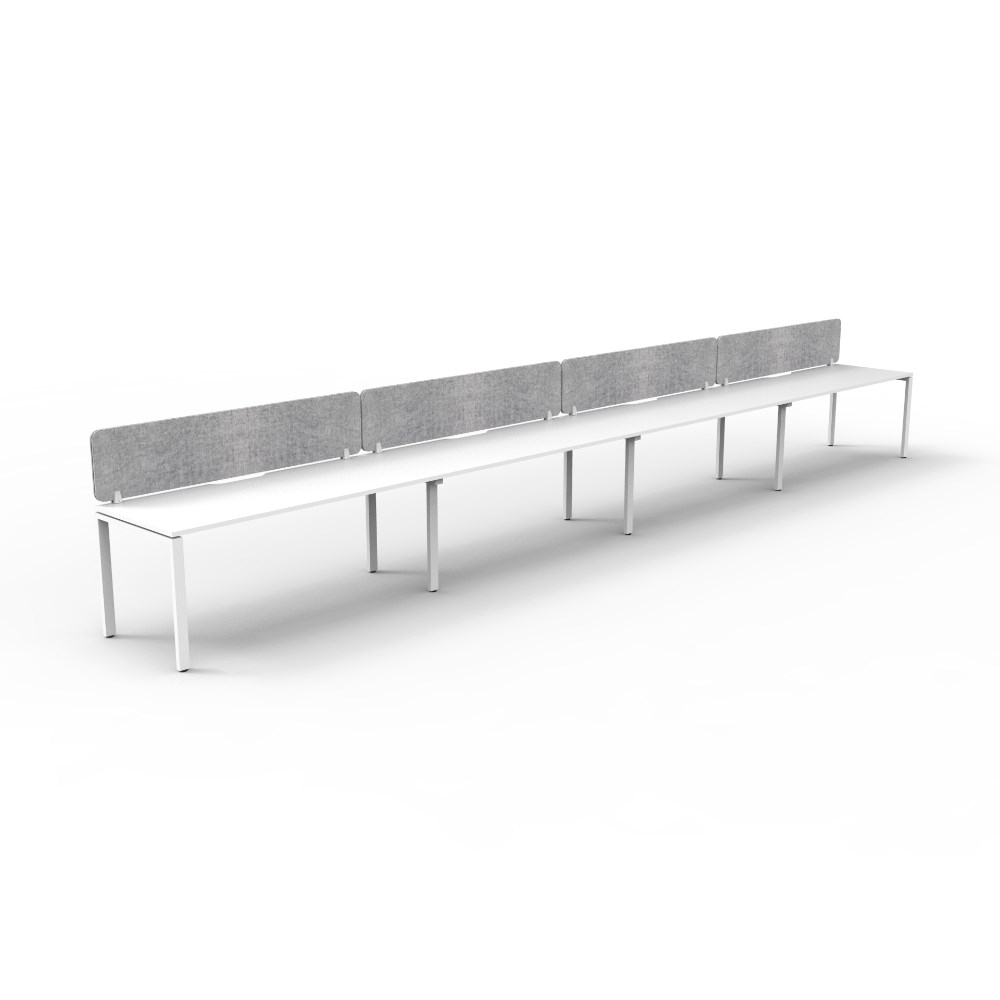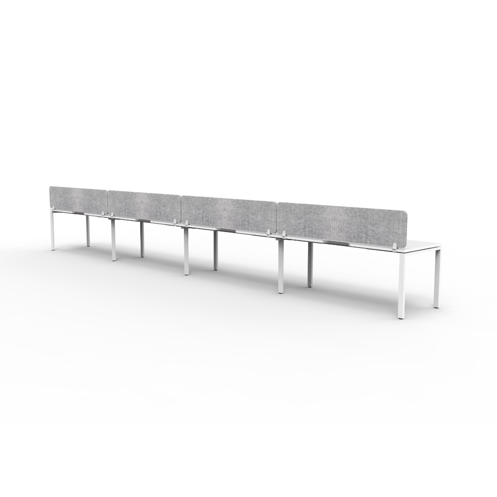 • 4 person single sided workstation with White top and White Satin frame, Grey Eco screen.
