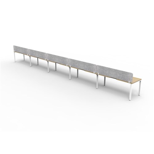 • 5 person single sided workstation with Natural Oak top and White Satin frame, Grey Eco screen.