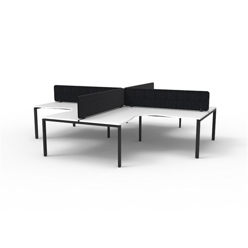 • 4 person corner workstation POD with White top and Black Satin frame, Black Eco screen.