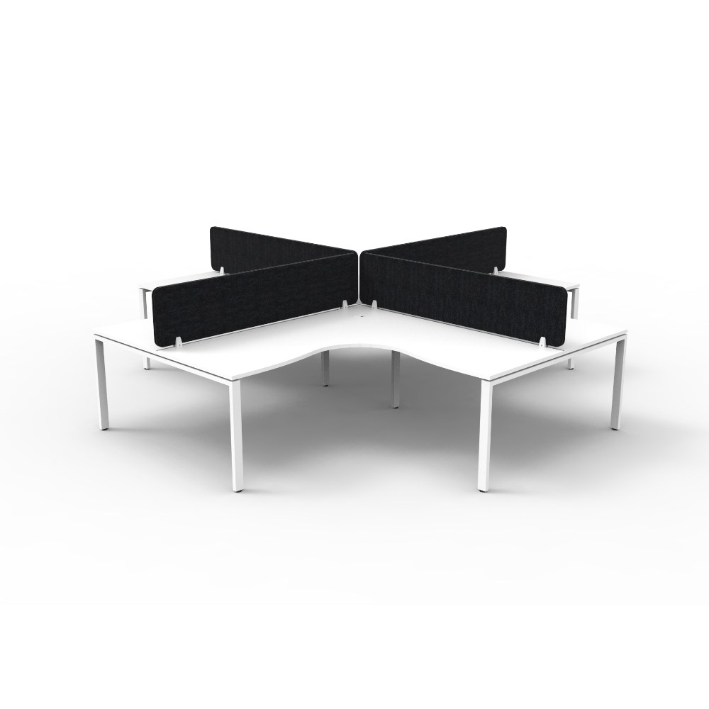 • 4 person corner workstation POD with White top and White Satin frame, Black Eco screen.