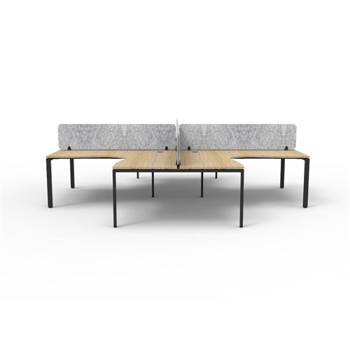 • 4 person corner workstation POD with Natural Oak top and Black Satin frame, Grey Eco screen.