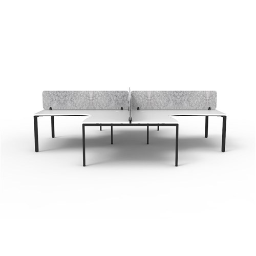• 4 person corner workstation POD with White top and Black Satin frame, Grey Eco screen.