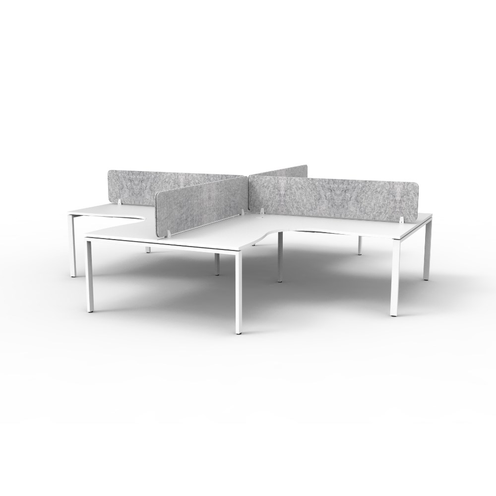 • 4 person corner workstation POD with White top and White Satin frame, Grey Eco screen.