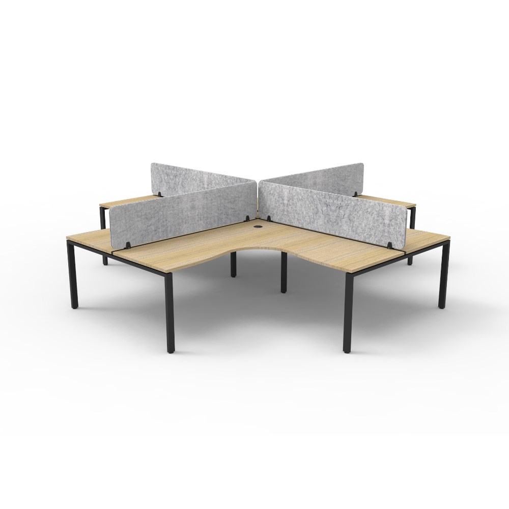 • 4 person corner workstation POD with Natural Oak top and Black Satin frame, Grey Eco screen.