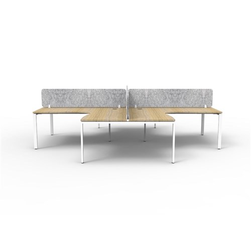 • 4 person corner workstation POD with Natural Oak top and White Satin frame, Grey Eco screen.