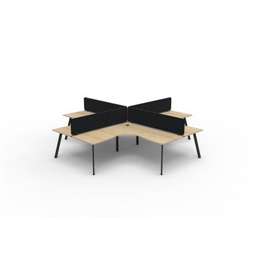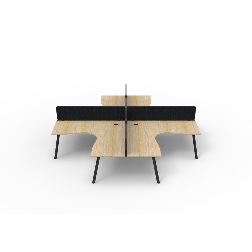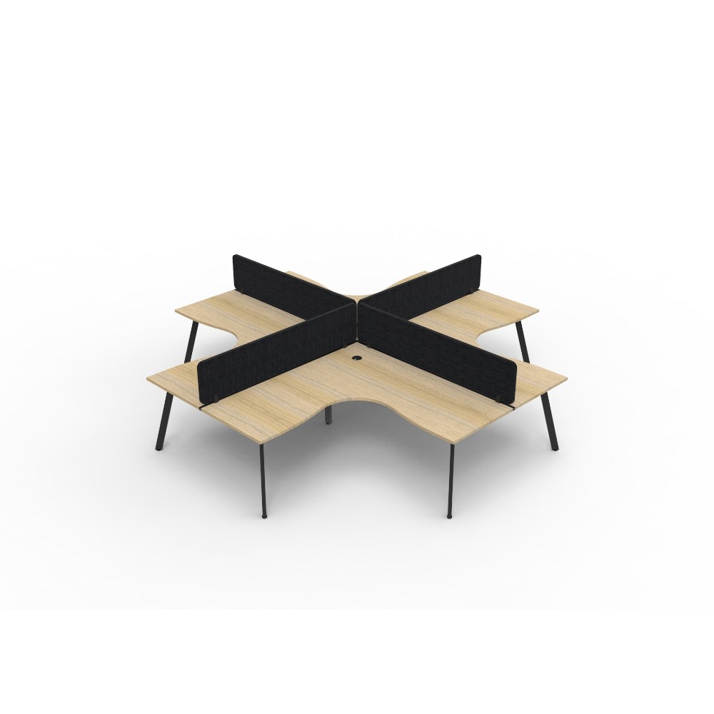 • 4 person corner workstation POD with Natural Oak top, Black Eco screen.