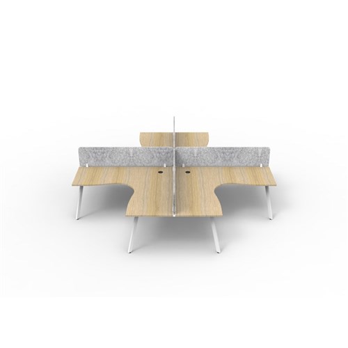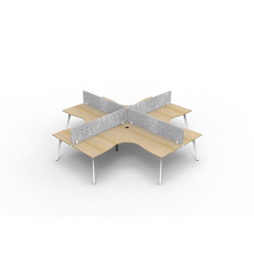 • 4 person corner workstation POD with Natural Oak top, Grey Eco screen.