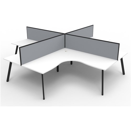 Rapidline Eternity Corner POD Workstation 4 Person + Screens 3600Wx3600Dx1200mmH White/Blk