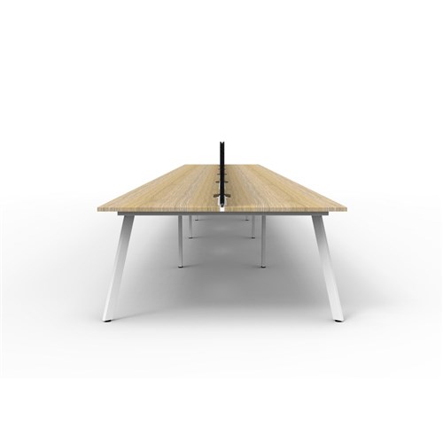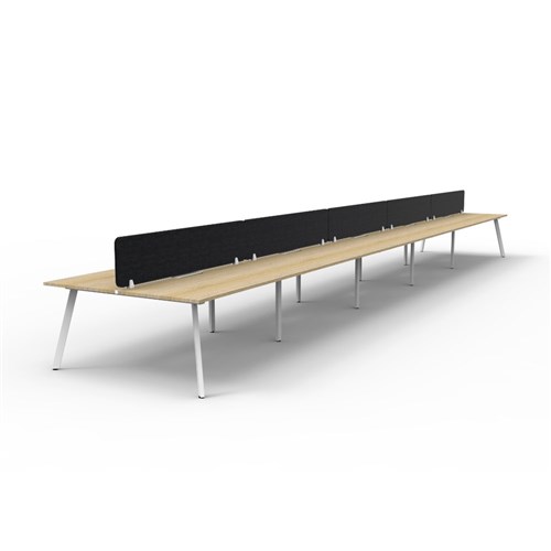 • 10 person double sided workstation with Natural Oak top and White Satin frame, Black Eco screen.