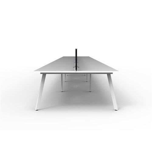 • 10 person double sided workstation with Natural White top and White Satin frame, Black Eco screen.