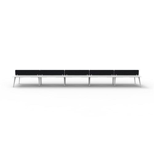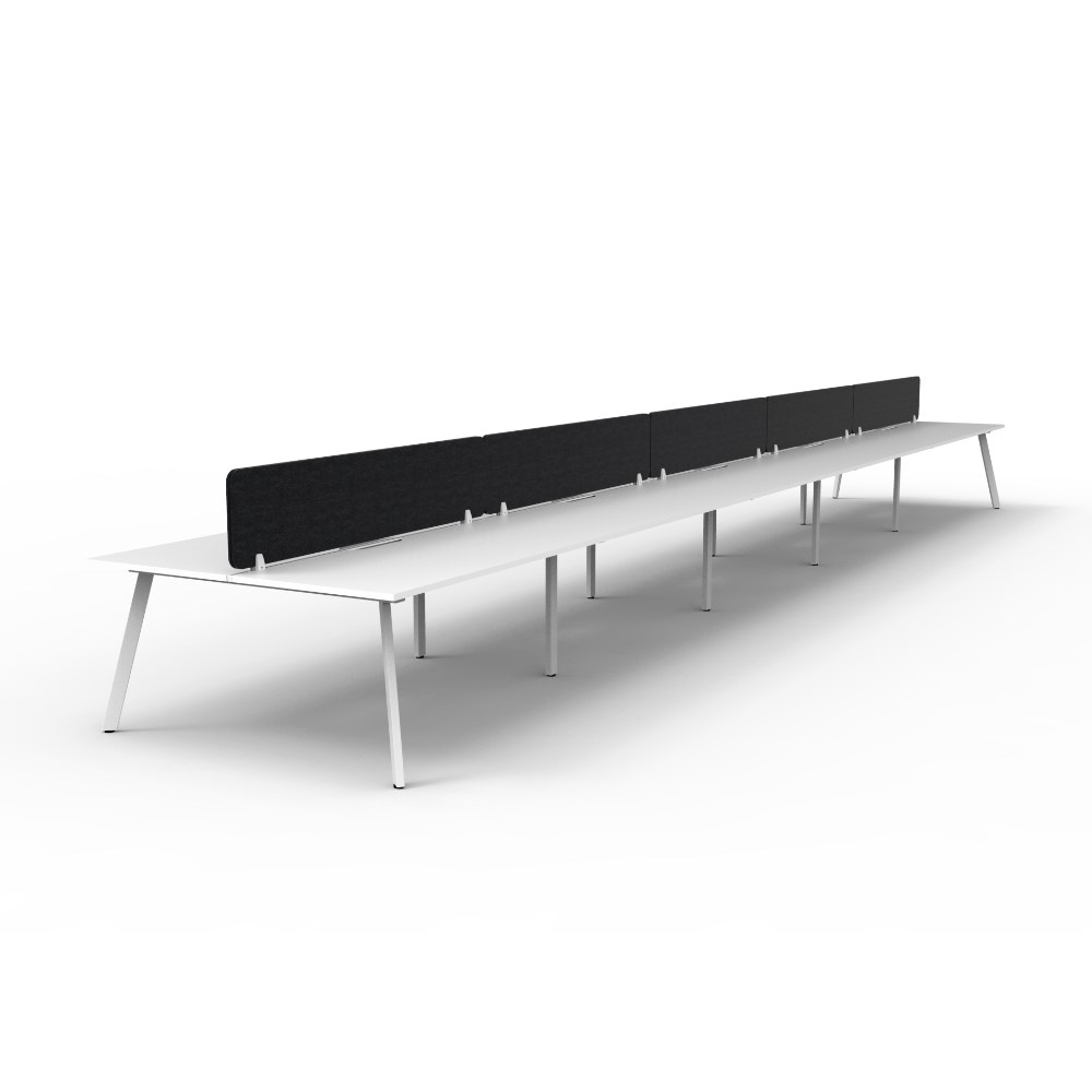 • 10 person double sided workstation with Natural White top and White Satin frame, Black Eco screen.