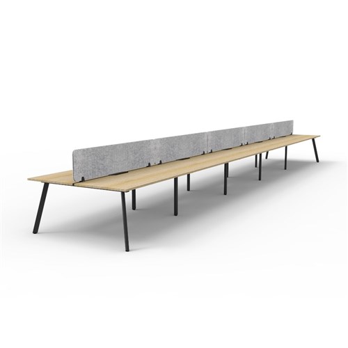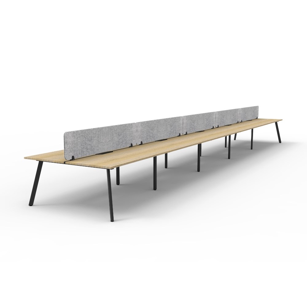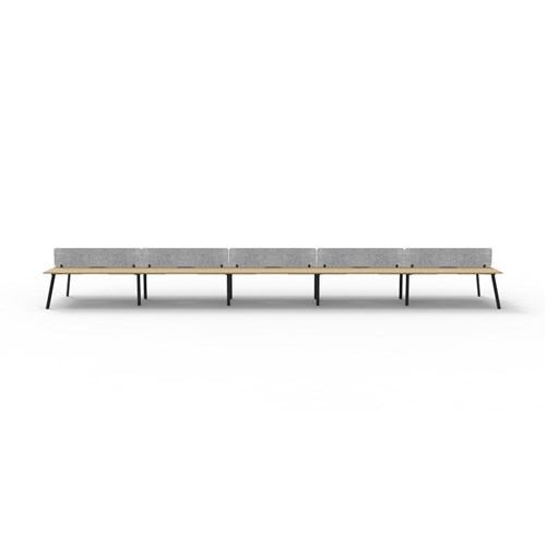 • 10 person double sided workstation with Natural Oak top and Black Satin frame, Grey Eco screen.