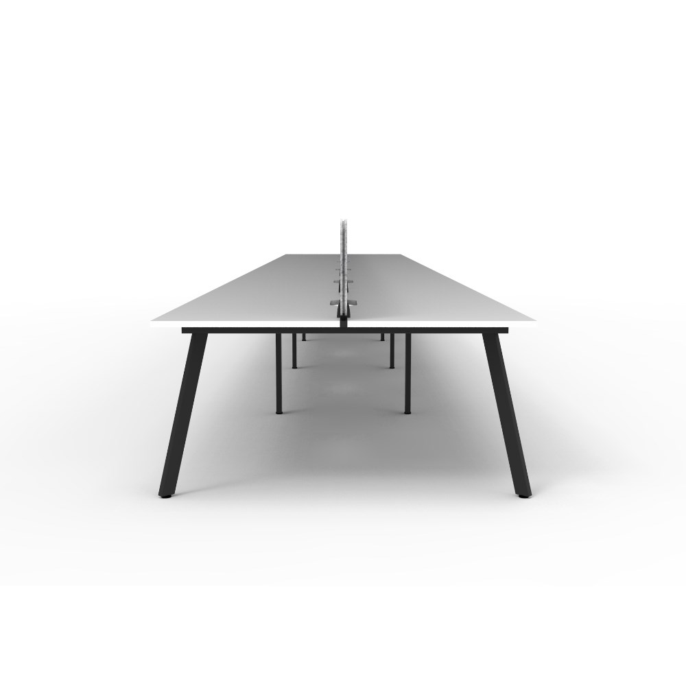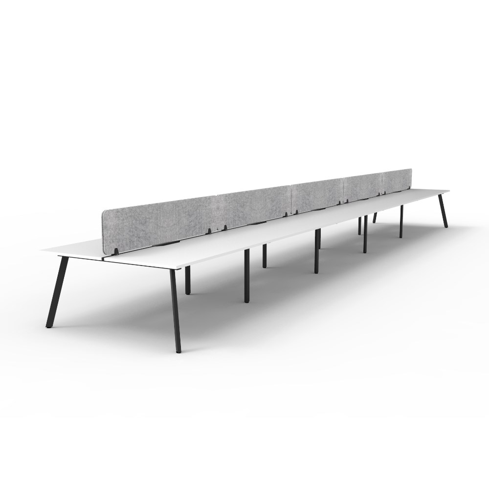 • 10 person double sided workstation with Natural White top and Black Satin frame, Grey Eco screen.
