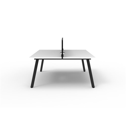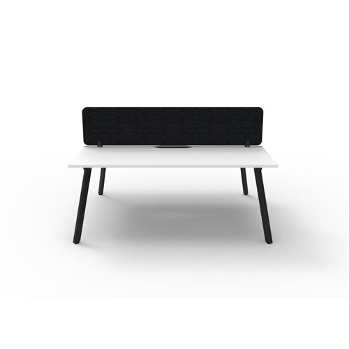 • 2 person double sided workstation with Natural White top and Black Satin frame, Black Eco screen.