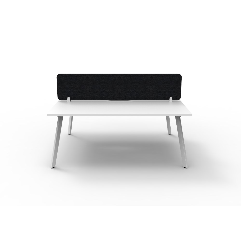 • 2 person double sided workstation with Natural White top and White Satin frame, Black Eco screen.